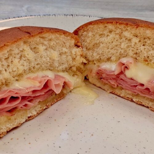 - Top the bottom of each bun with one ounce of sliced ham.